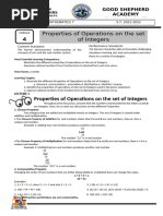 LEARNING Illustrates the different properties of operations on the set of integers.