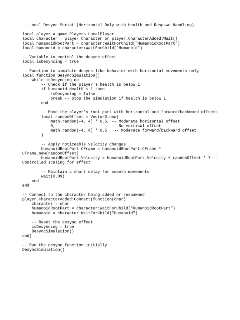 -- Local Desync Script (Horizontal Only with Health and Respawn Handling)