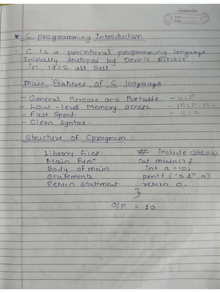 C Programming Written Notes 1 Pages 1