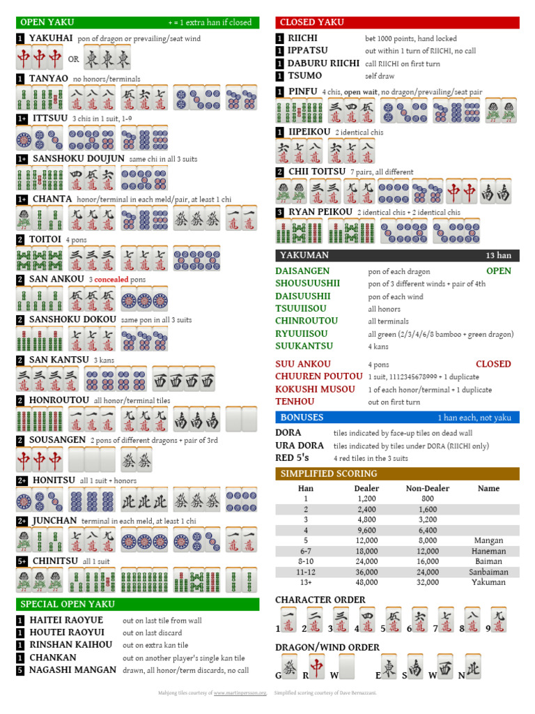 Mahjong tiles courtesy of www.martinpersson.org. Simplified scoring courtesy of Dave Bernazzani.