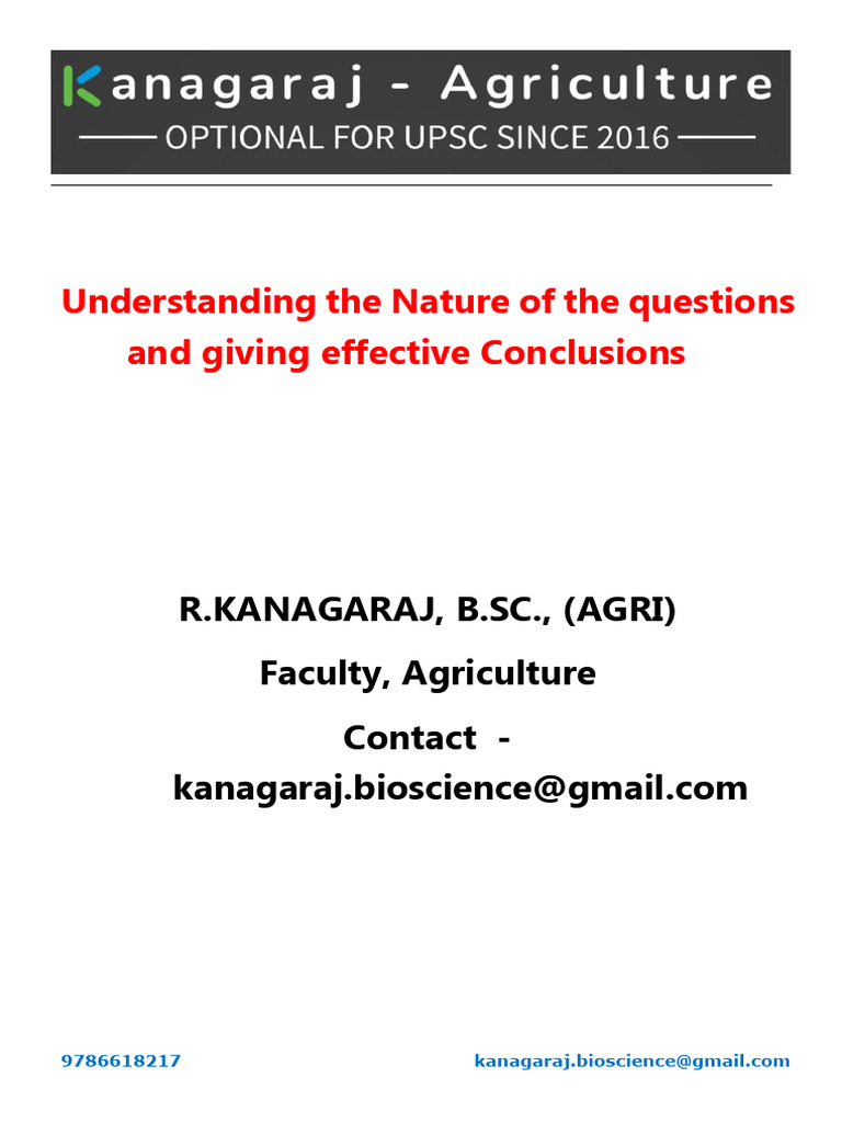 i) Conclusion I - Overall importance / significance of the particular topic:-