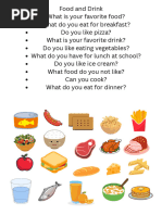 Food and Drink What Is Your Favorite Food What Do You Eat For Breakfast Do You Like Pizza What Is Your Favorite Drink Do You Like Eating Vegetables What Do You Have For Lunch at School Do You Like