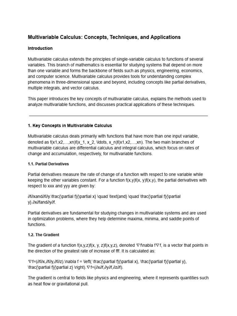 variables. This branch of mathematics is essential for studying systems that depend on more