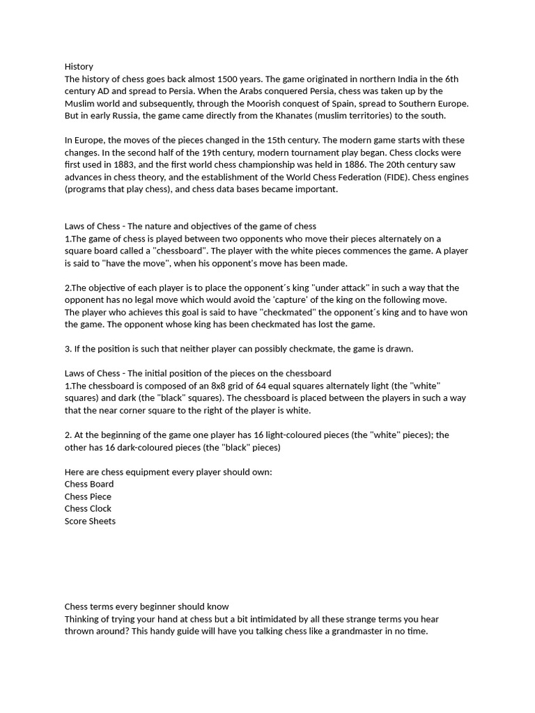 1.The game of chess is played between two opponents who move their pieces alternately on a
