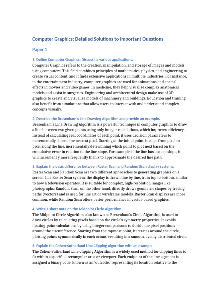 2. Describe the Bresenham's Line Drawing Algorithm and provide an example.