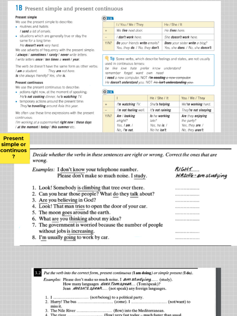 ~3.2] Put the verb into the correct form, present continuous (Lam doing) or simple present (1 do).