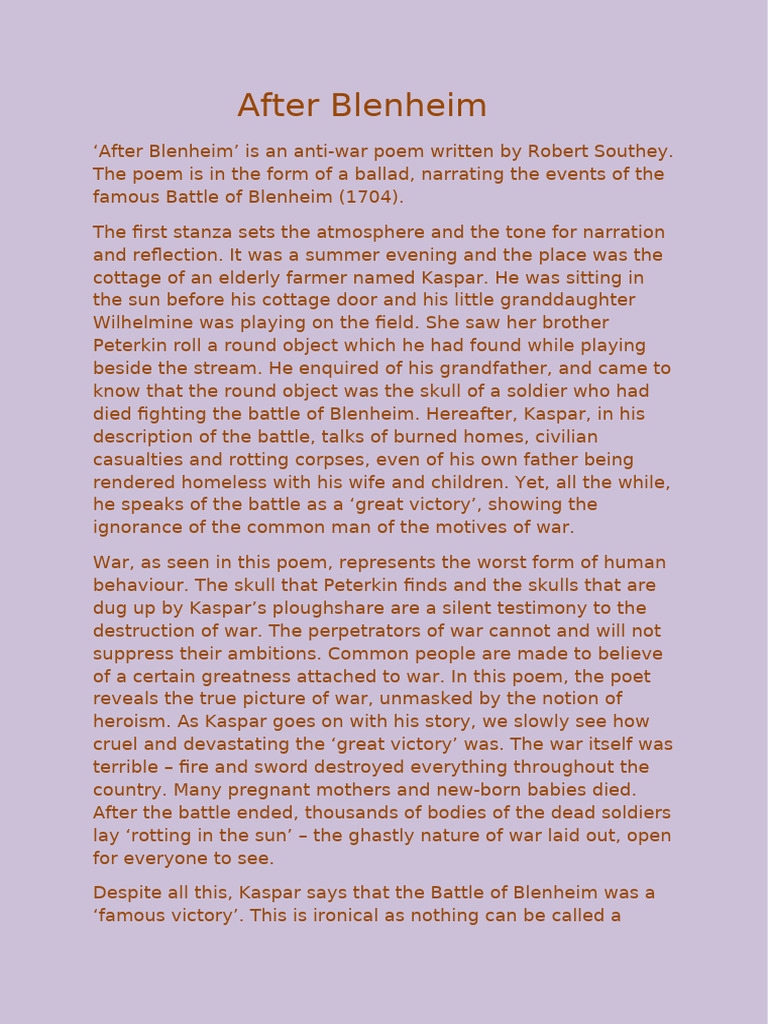 ‘After Blenheim’ is an anti-war poem written by Robert Southey.