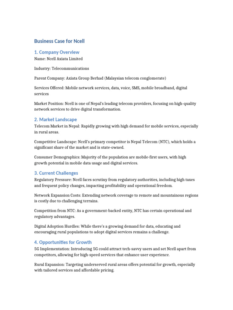 Business Case for Ncell