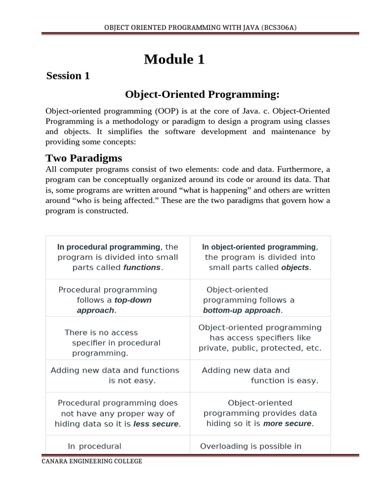 OBJECT ORIENTED PROGRAMMING WITH JAVA (BCS306A)