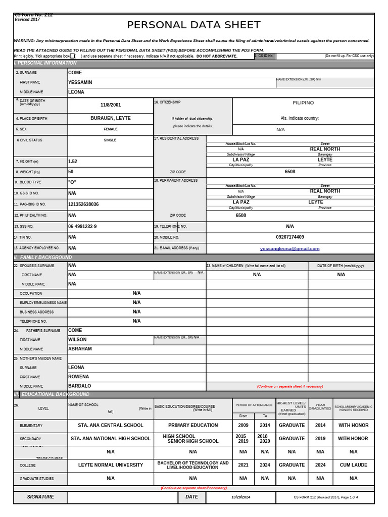 PERSONAL DATA SHEET