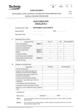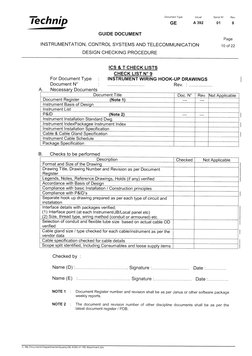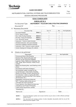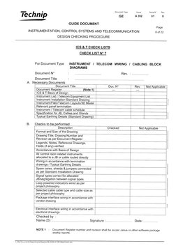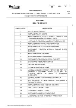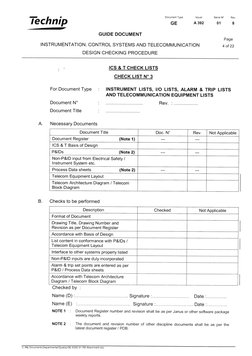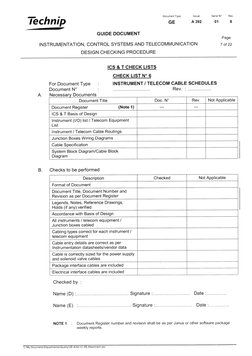 Technip GUIDE Document INSTRUMENTATION, DESIGN CHECKING PROCEDURE APPENDIX 1 ICS and T CHECK LISTS I t I Document Type Issuer Serial W Rev. GE Page CONTROL SYSTEMS AND TELECOMMUNICATION CHECK LIST Ndeg 1 For Document Type Document W Document Title.
