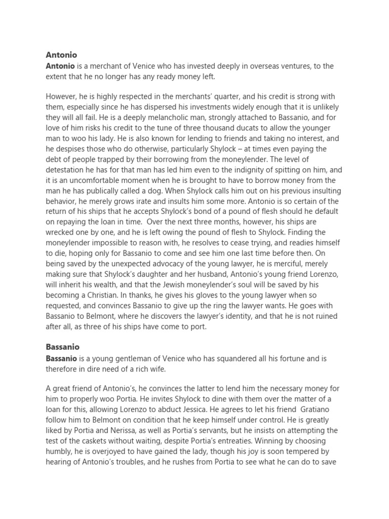 they will all fail. He is a deeply melancholic man, strongly attached to Bassanio, and for