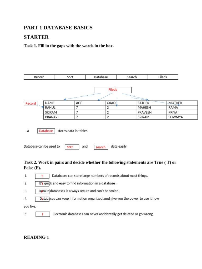 Task 1. Look at the illustration, which represents a database file. Can you idenify