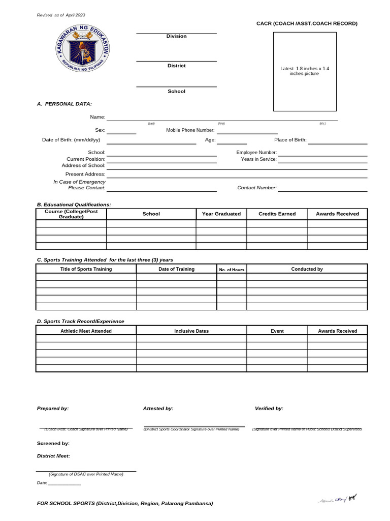 FOR SCHOOL SPORTS (District,Division, Region, Palarong Pambansa)