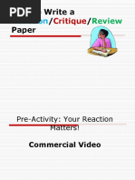 has been read or seen. Reaction paper is evaluated due to the writer's communication skills and only