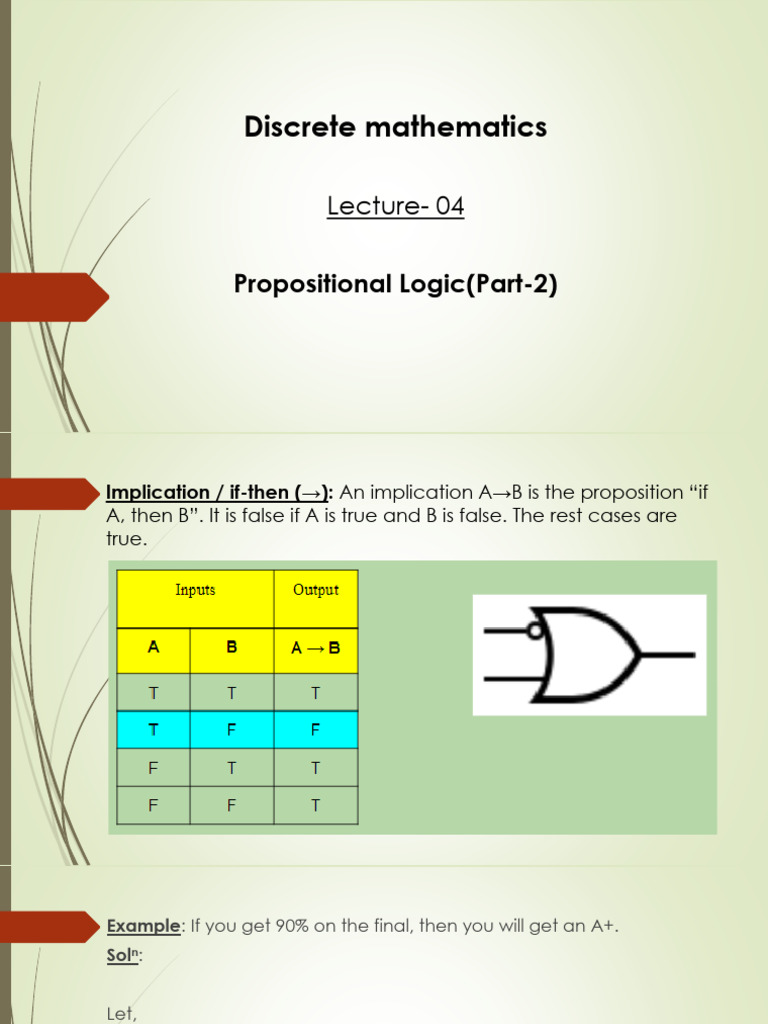 Example: Find the Implication of the propositions: If Jibon learns discrete