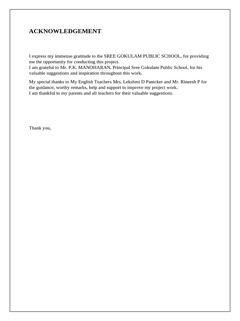 My special thanks to My English Teachers Mrs. Lekshmi D Panicker and Mr. Rineesh P for