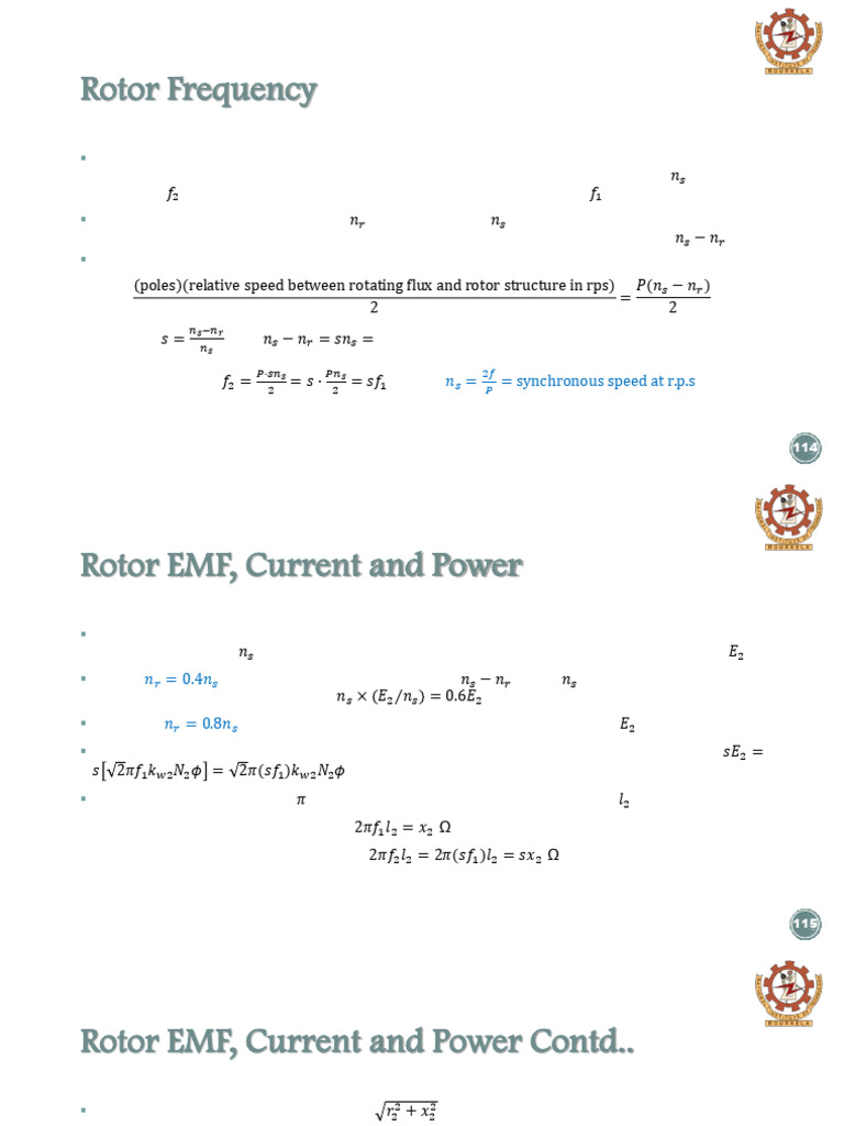 relative speed between synchronously rotating flux and rotor conductors becomes (𝑛𝑠 − 𝑛𝑟 ) rps.