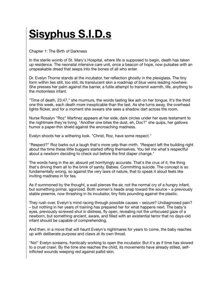 Dr. Evelyn Thorne stands at the incubator, her re ection ghostly in the plexiglass. The tiny