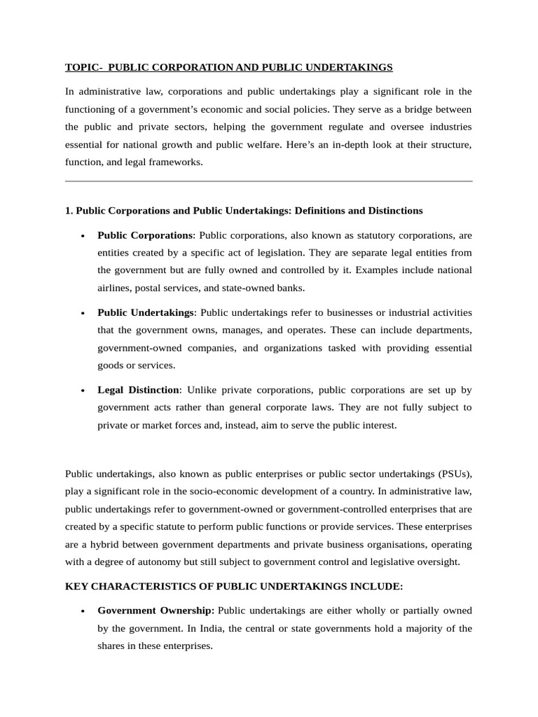 In administrative law, corporations and public undertakings play a significant role in the