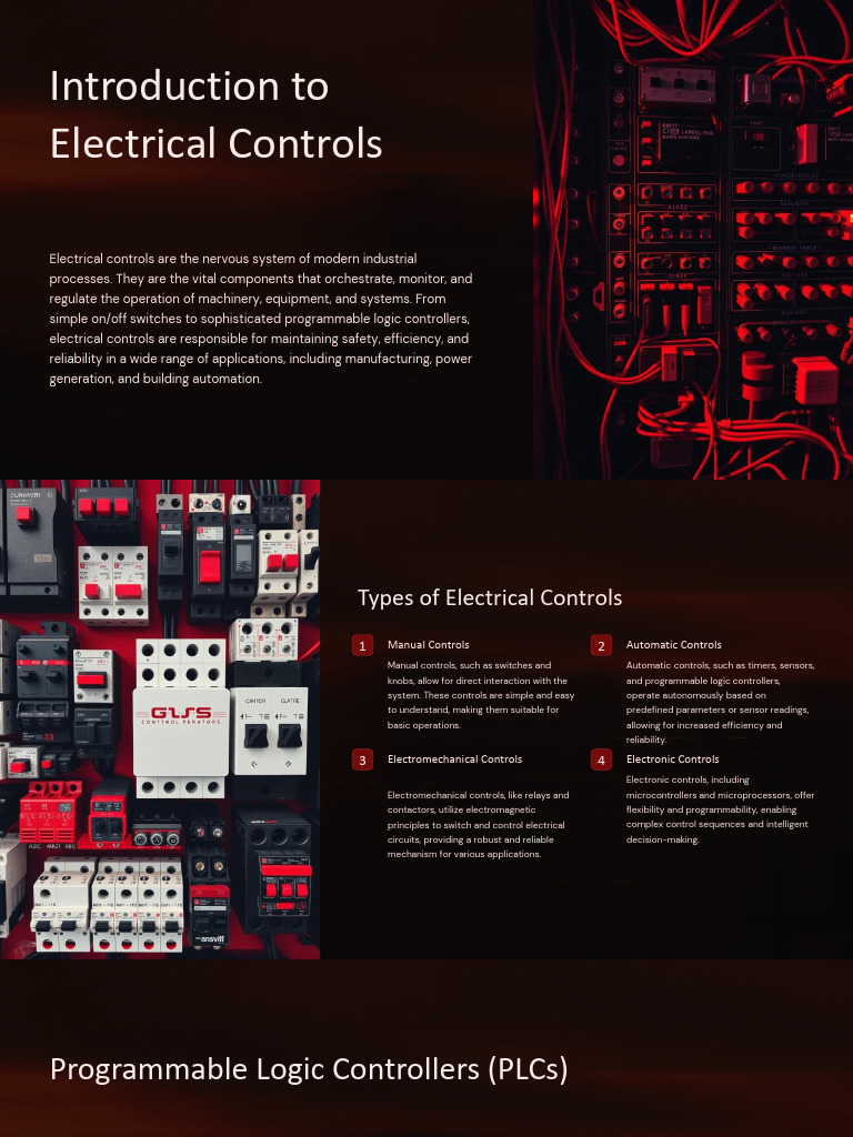 Electromechanical controls, like relays and microcontrollers and microprocessors, offer
