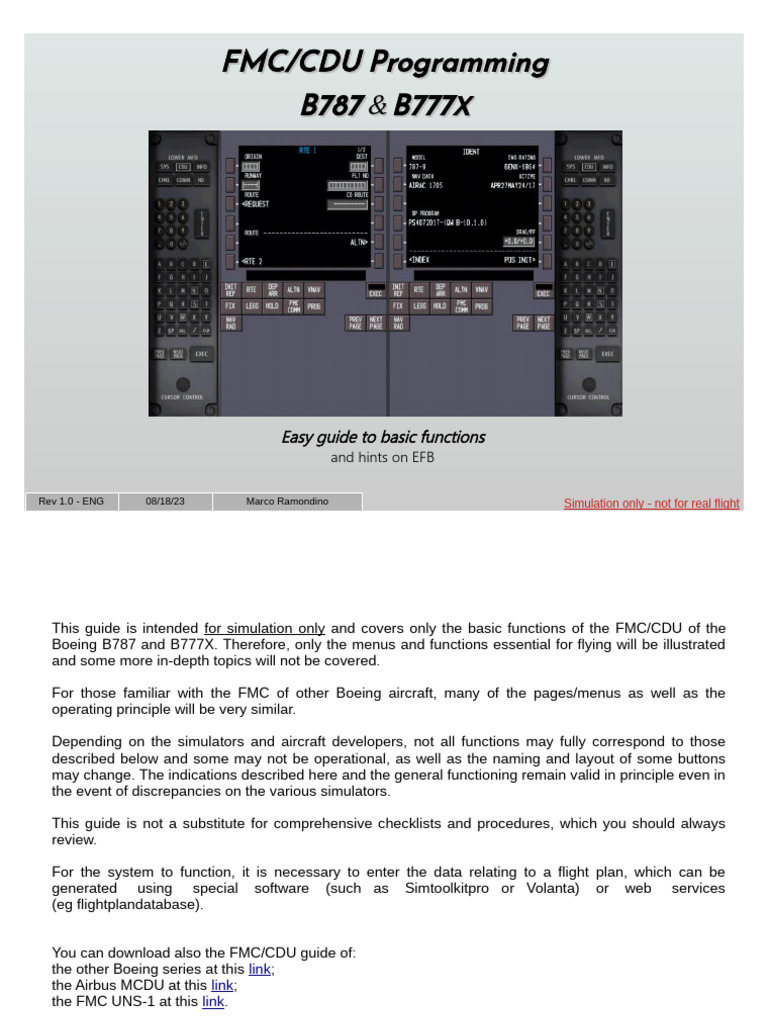 This guide is intended for simulation only and covers only the basic functions of the FMC/CDU of the