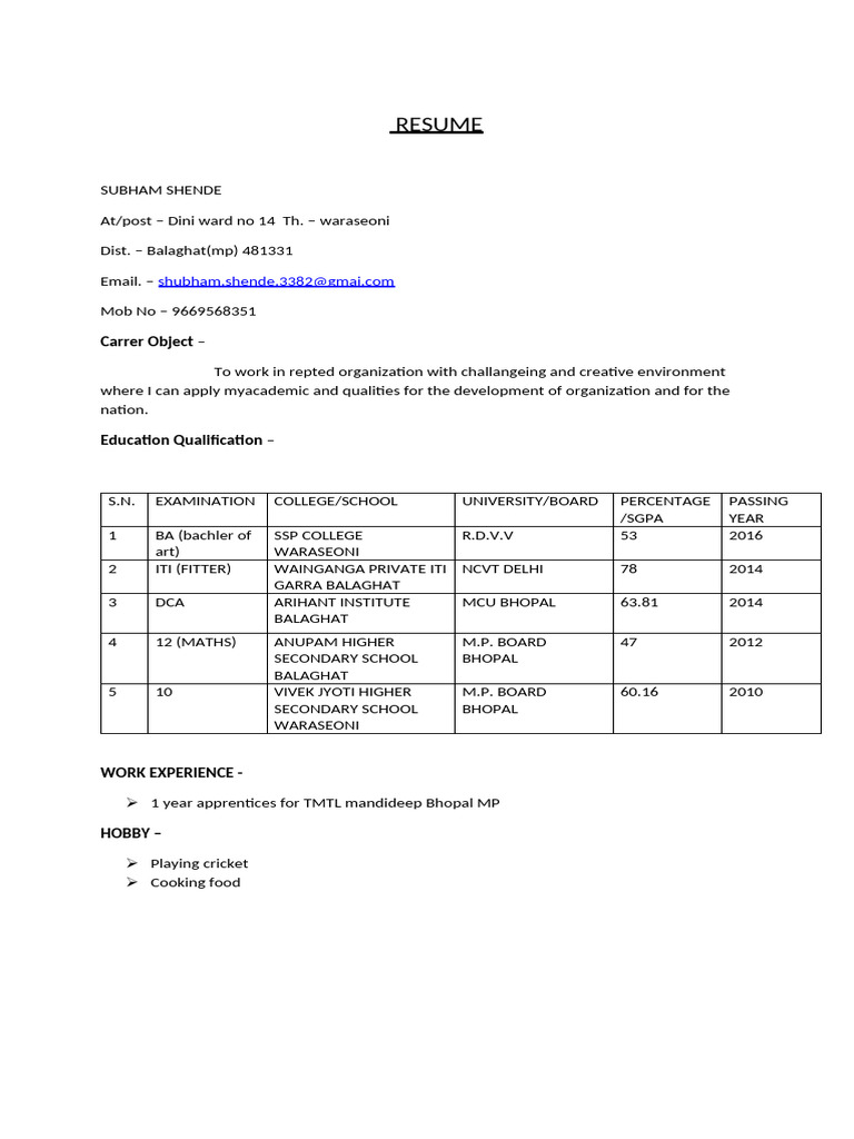 S.N. EXAMINATION COLLEGE/SCHOOL UNIVERSITY/BOARD PERCENTAGE PASSING