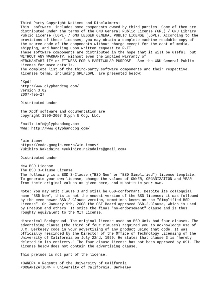 Third-Party Copyright Notices and Disclaimers: