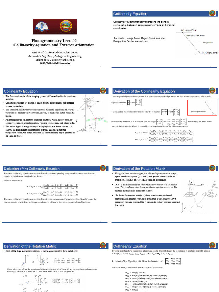 Derivation of the Collinearity Equation Derivation of the Rotation Matrix