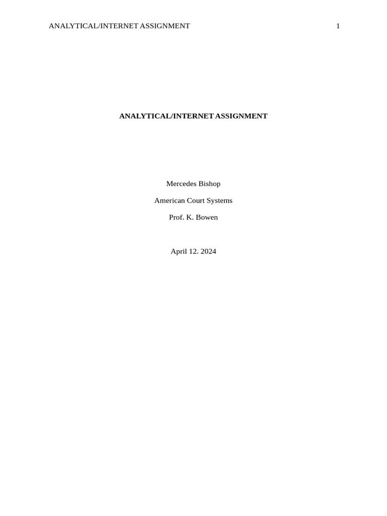 ANALYTICAL/INTERNET ASSIGNMENT 1