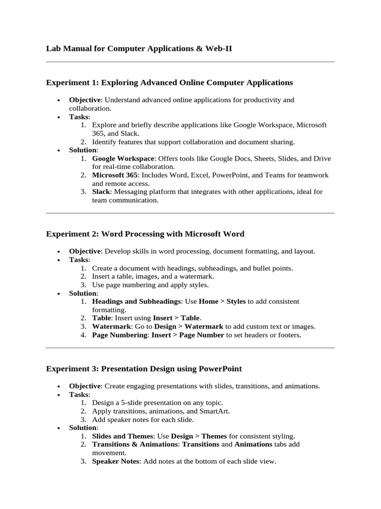 Lab Manual for Computer Applications & Web-II