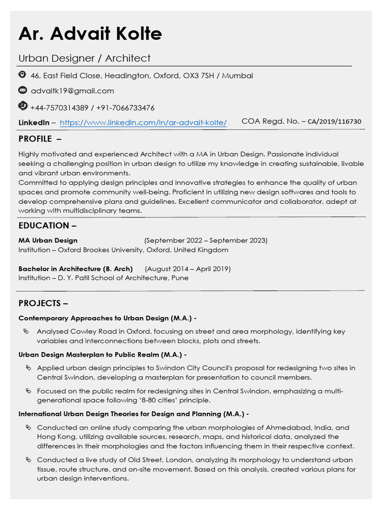 LinkedIn – https://www.linkedin.com/in/ar-advait-kolte/ COA Regd. No. – CA/2019/116730