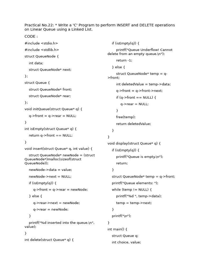 on Linear Queue using a Linked List.