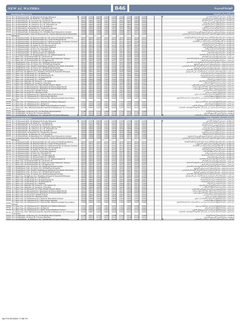 40453- B | Bani Yas, Al Tafawwuq St / Salama Bint Butti School 0658 0900 1100 1258 1458 1700 1905 2105 2258 ﻣﺪرﺳﺔ ﺳﻼﻣﺔ ﺑﻨﺖ ﺑﻄﻲ/ ﺷﺎرع اﻟﺘﻔﻮق، ﺑﻨﻲ ﻳﺎس