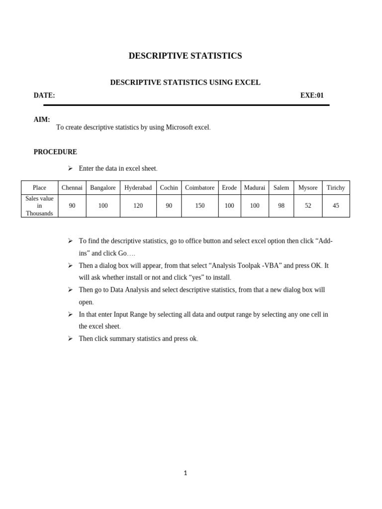To find the descriptive statistics, go to office button and select excel option then click “Add-