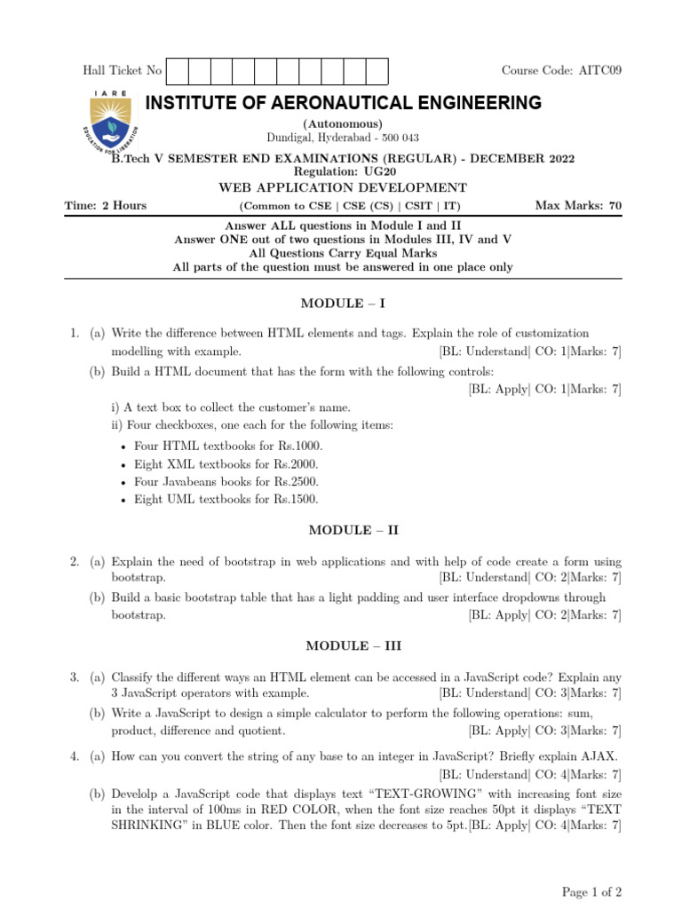 Time: 2 Hours (Common to CSE | CSE (CS) | CSIT | IT) Max Marks: 70