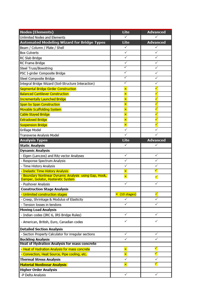 midas Civil Technical Specifications Lite vs Advanced