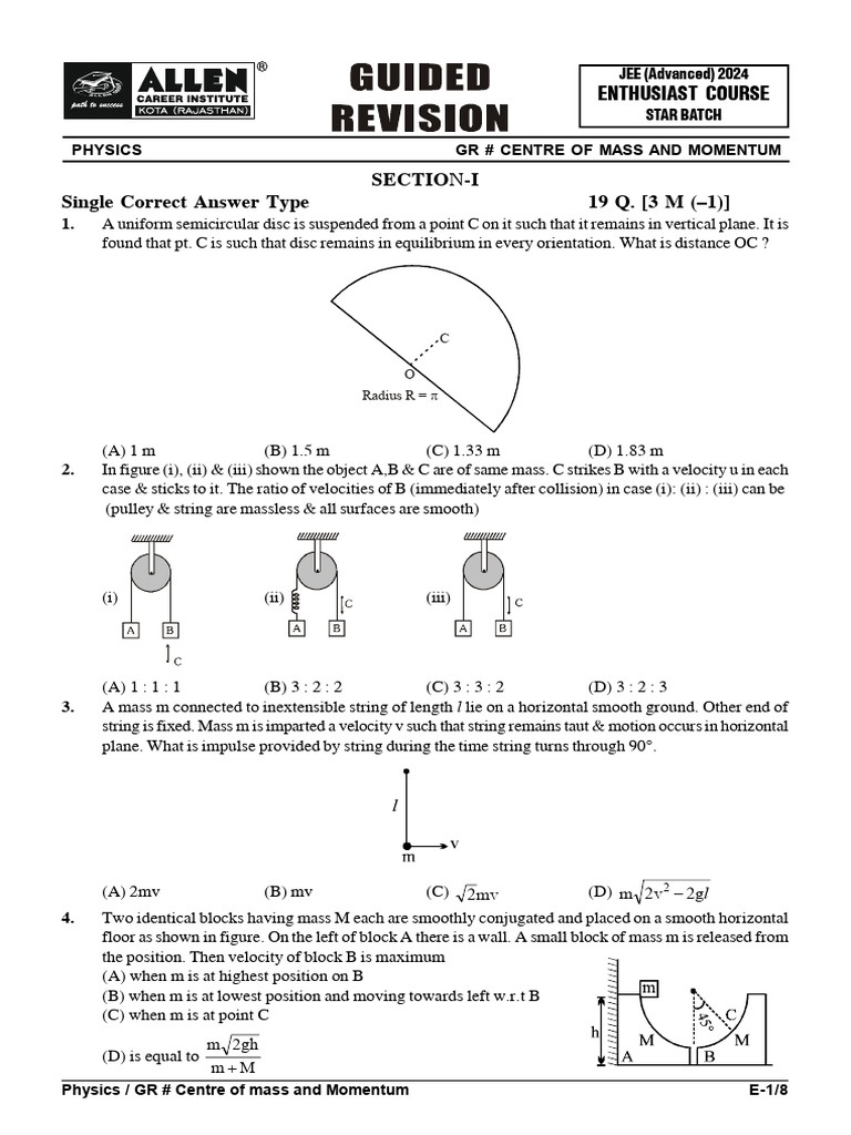 E-8/8 Physics / GR # Centre of mass and Momentum