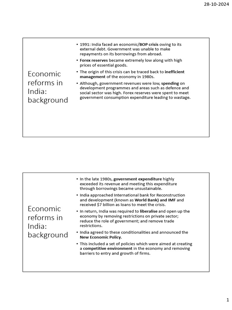 • Delicensing, decontrol, deregulation, subsidies (incentives)
