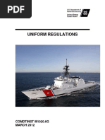 a. Requests will be forwarded promptly through the chain of command to the appropriate level for decision. b. No person will, through intent or neglect, fail to act on or forward promptly any request or appeal which is his or her duty to act on or forward. c. No person shall be required to wait in excess of four working days for results of a forwarded special request chit. All properly submitted request chits shall be returned by the chain of command marked approved, disapproved, or have indicated on them why action is still pending (investigation of facts, undetermined ship schedule, etc.) and a date when final determination may be expected. 3206 UNIFORMS AND APPEARANCE. The wearing of the Coast Guard uniform shall be in accordance with U.S. Coast Guard Uniform Regulations and law enforcement directives. a. The uniform of the day while the ship is inport or underway will normally be Coast Guard working blue or EBU with steel-toed shoes/boots. Boarding team members and boat crews shall wear law enforcement coveralls or EBUs and appropriate boots. (Any variation to the standard uniform of the day will be at the discretion of the OIC). b. Uniforms are to be properly stenciled, clean, and in good repair. c. Covers will be worn on all weatherdecks while inport and at anchor. Covers will not be worn on the messdecks or in sickbay. 3207 CIVILIAN CLOTHING. Unless the Coast Guard Commandant or the Secretary of the Navy directs that a uniform must be worn at all times and except as U.S. Coast Guard Uniform Regulations specify, civilian clothes may be worn by all officers and enlisted in accordance with the following regulations. a. Civilian clothes may be worn while leaving or returning to the ship, while on authorized leave, liberty, or in any off duty status onshore, and to any meals inport when in a liberty status. b. While underway and authorized by the OIC, civilian attire may be worn for the purpose of physical training when not in a duty status. c. Civilian attire must comply with reference (c) and present a neat appearance. Dirty, torn, frayed, or patched clothing is not acceptable and will not be worn on board or ashore in a liberty status. Additionally, revealing clothing and clothing with foul or provocative language is not authorized. The wearing of uniform items with civilian attire is unauthorized. 3208 BERTHING. CG DET personnel will be assigned a stateroom by the XPO. All changes to berthing assignments must be approved by the OIC.
