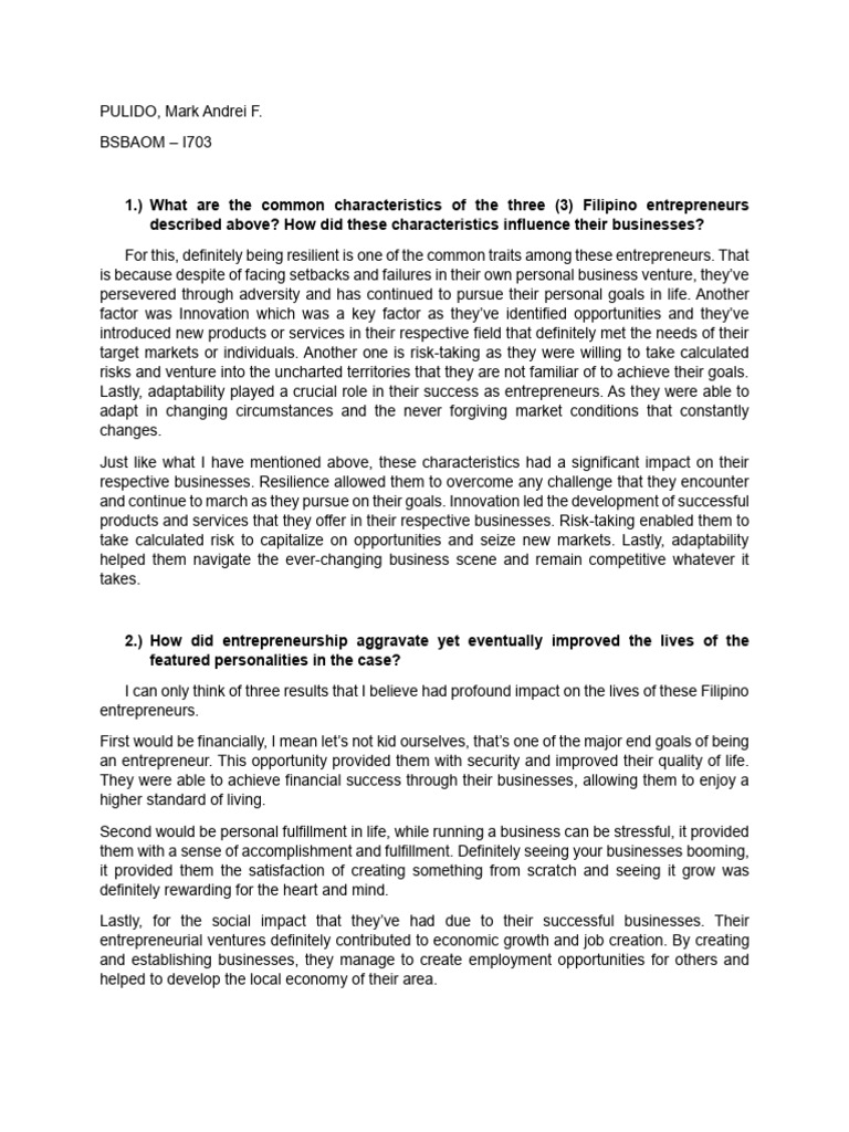 1.) What are the common characteristics of the three (3) Filipino entrepreneurs