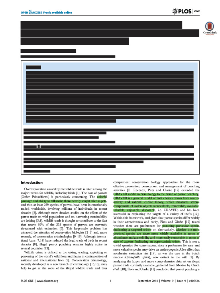 numbers of poached parrots. Here, we reanalyze the same data components and how they were measured are resumed as follows