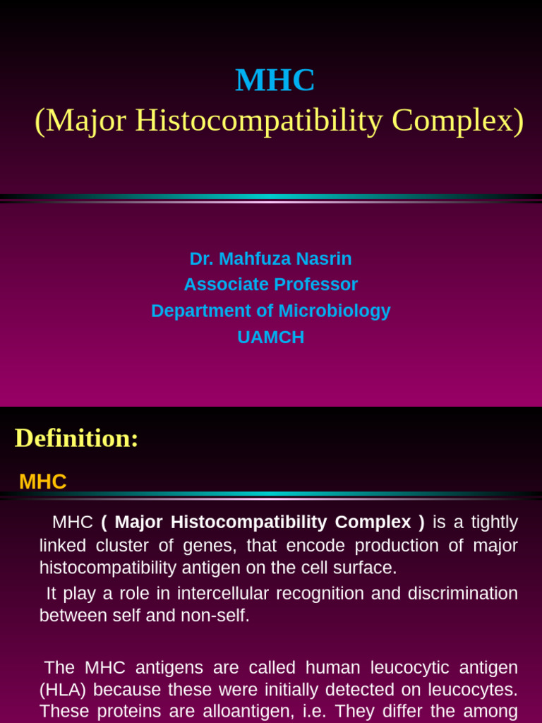 MHC ( Major Histocompatibility Complex ) is a tightly