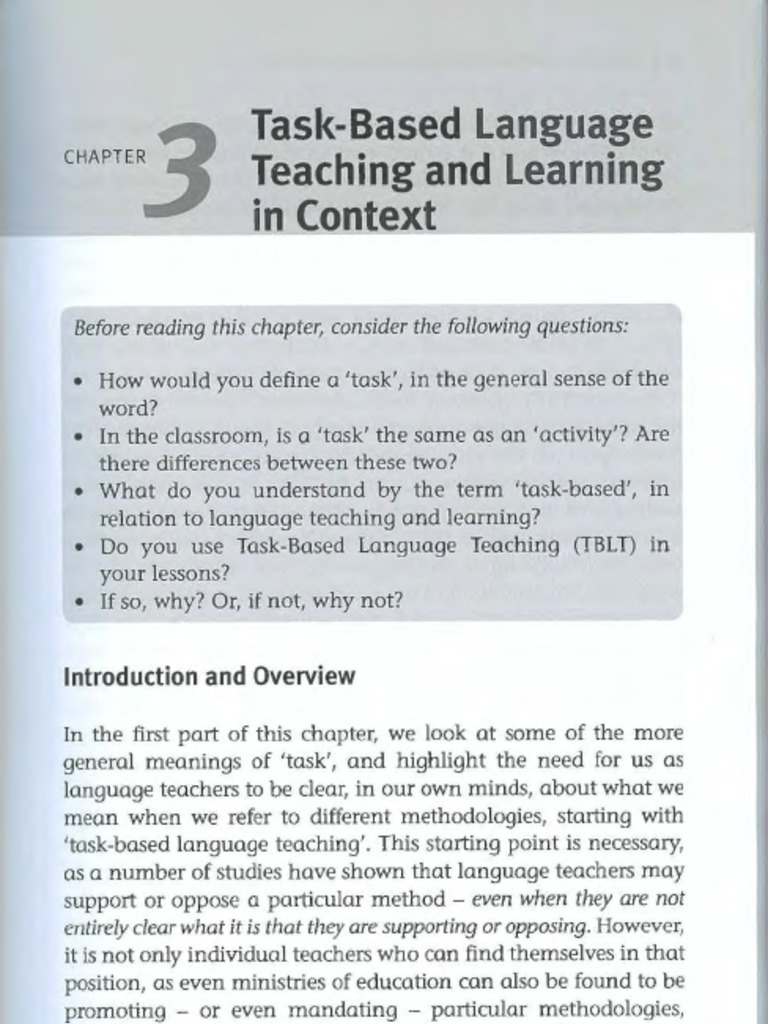METHODS AND METHODOLOGIES FOR LANGUAGE TEACHING TASK-BASED LANGUAGE TEACHING AND LEARNING IN CONTEXT 71