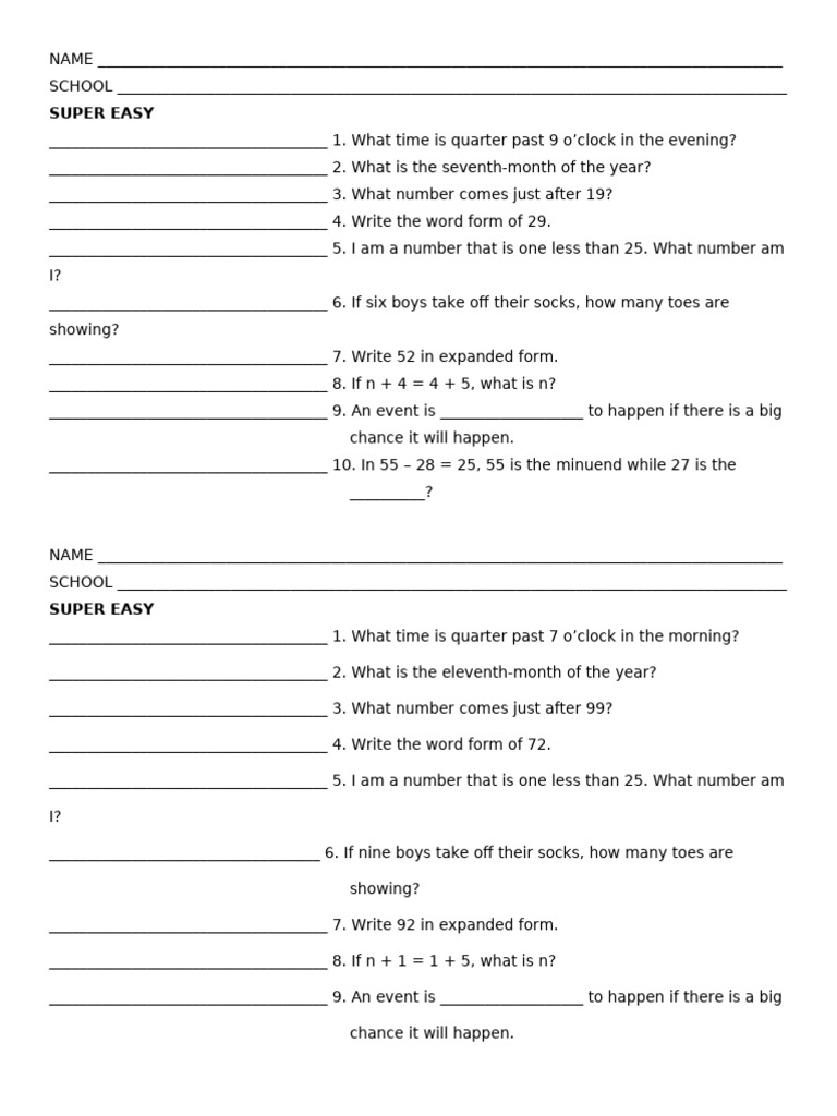 _____________________________________ 5. I am a number that is one less than 25. What number am