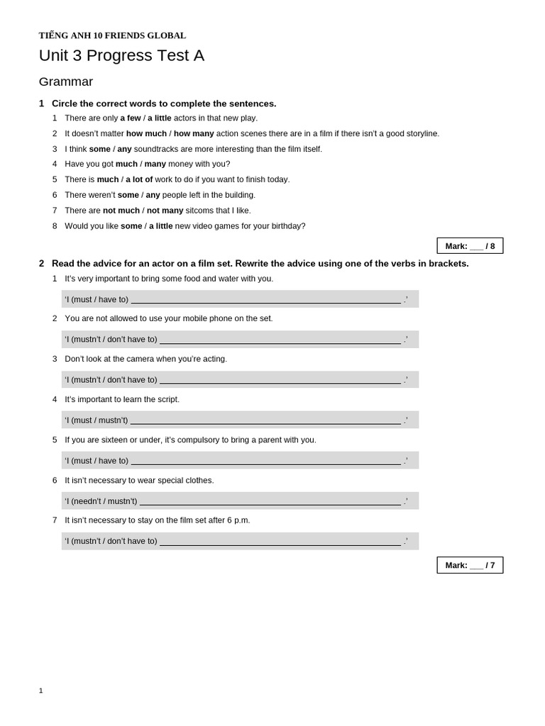 Unit 3 Progress Test A