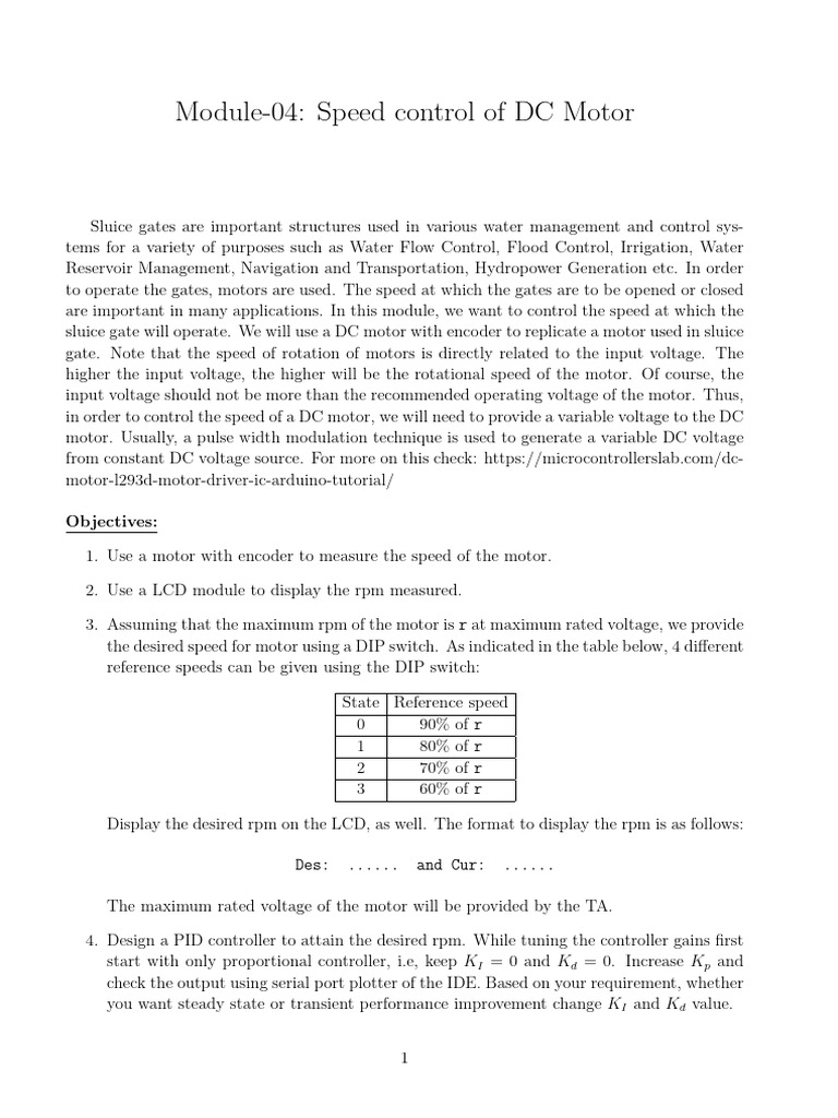 are important in many applications. In this module, we want to control the speed at which the