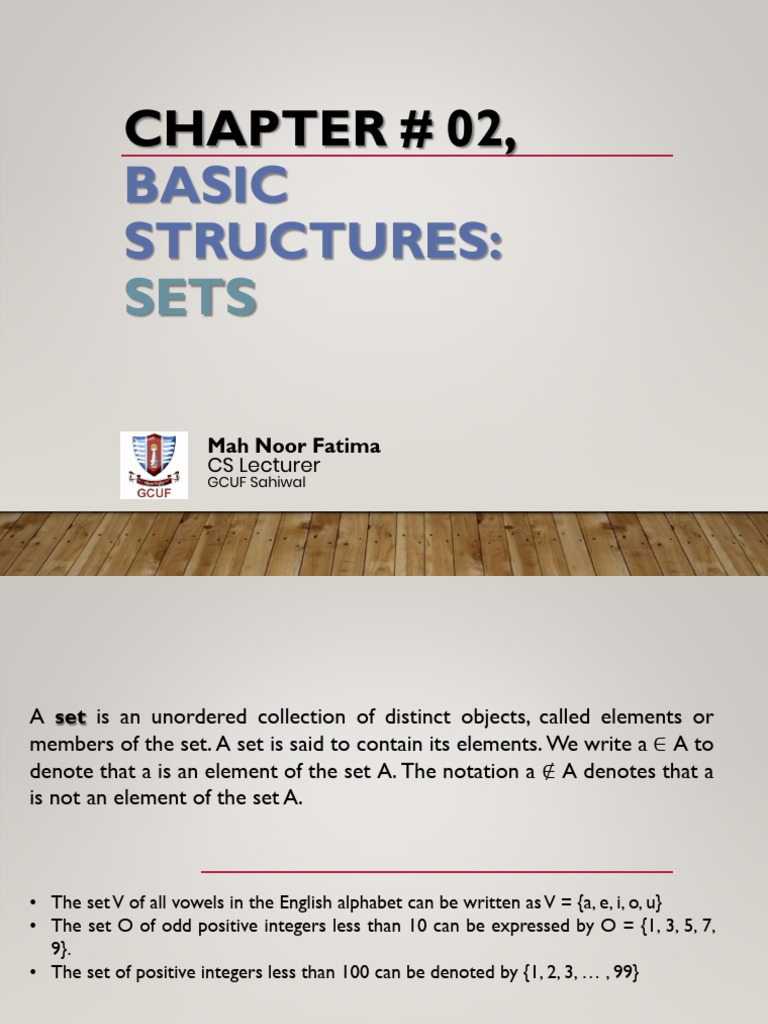 • The set O of odd positive integers less than 10 can be expressed by O = {1, 3, 5, 7,