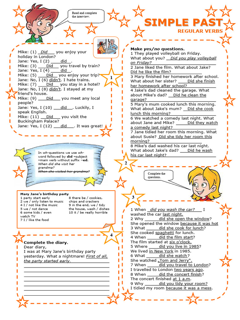 Mike: (5) Did you enjoy your trip? 3 Mary finished her homework after school.