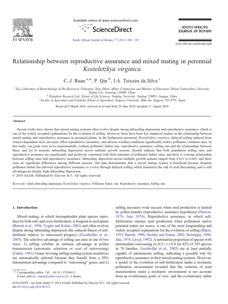 Ruan, C.J., Qin, P., He, Z.X., 2004. Delayed autonomous selfing in Kosteletzkya Phylogeny and Evolution. Cambridge University, Cambridge, pp. 3–16.